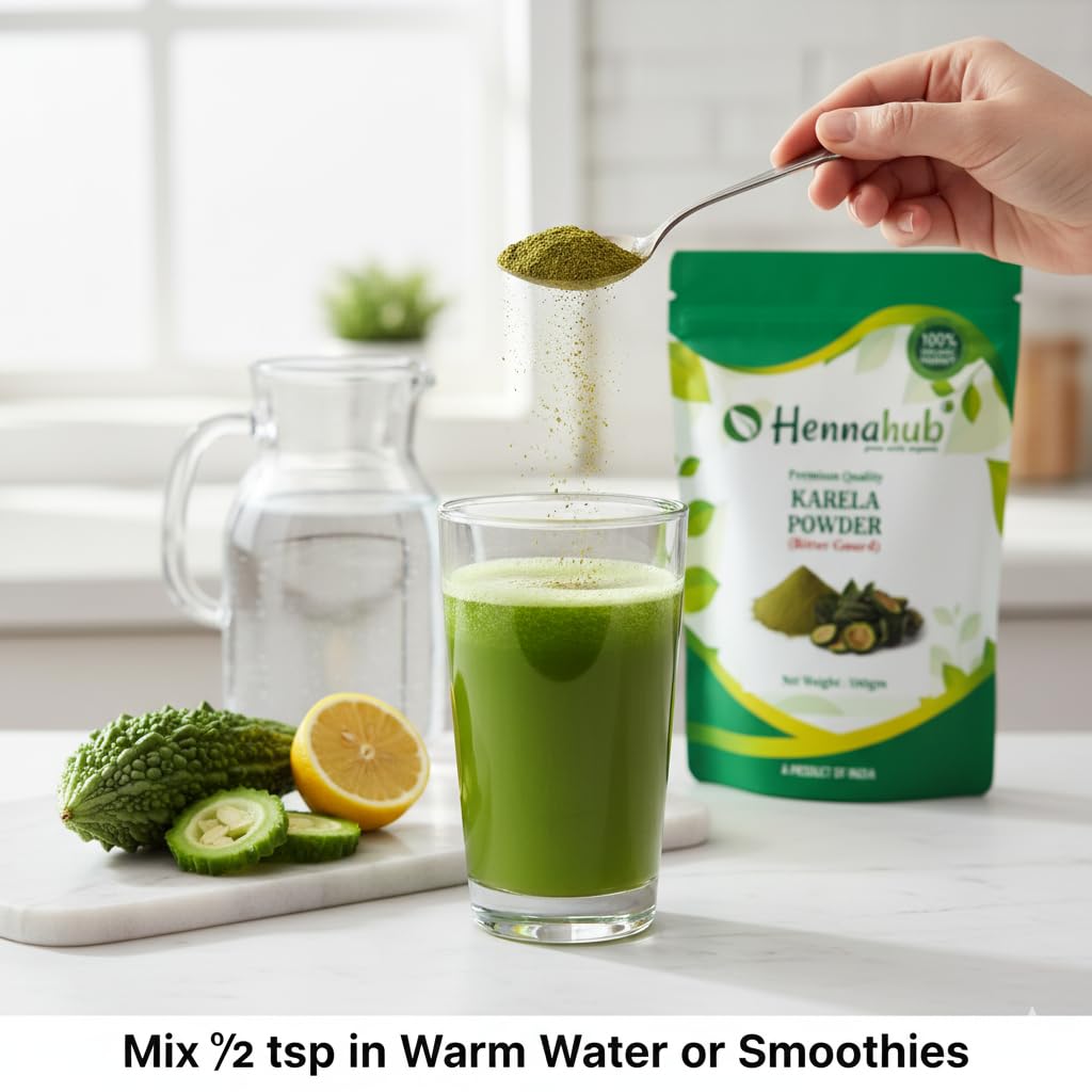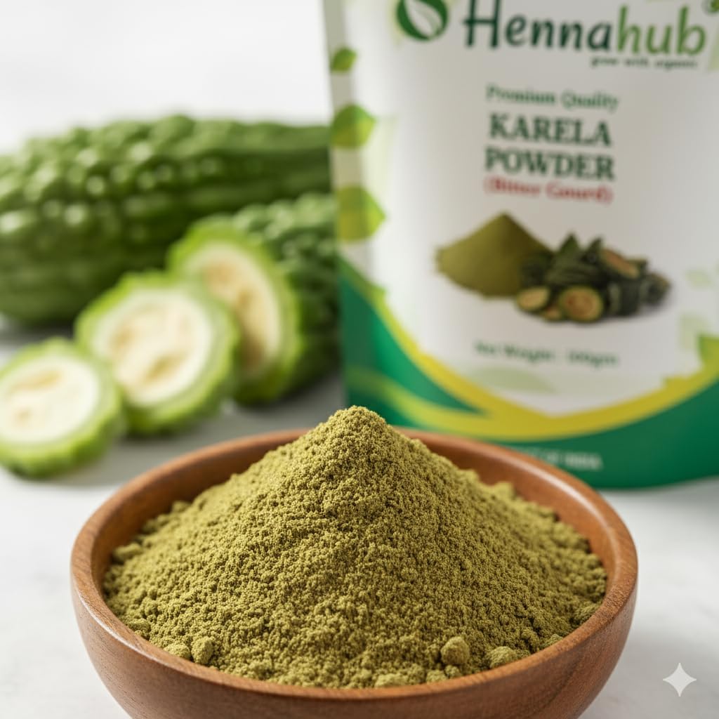 Hennahub Karela Powder (Food Grade) 100gm Pack is made from naturally dried Bitter Gourd (Momordica charantia). It is a traditional ingredient valued for its earthy taste and plant-based nutrition, suitable for everyday food and beverage preparation.